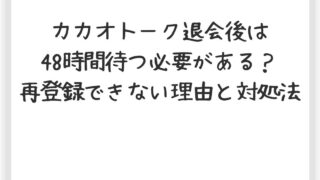 カカオトークを退会したあと、「再登録できない」「48時間待てと言われた」と困っていませんか。実は、退会直後に同じ電話番号で再登録できないのは仕様によるものです。本記事では、24時間・48時間・72時間の違い、制限がかかる理由、そして正しい対...