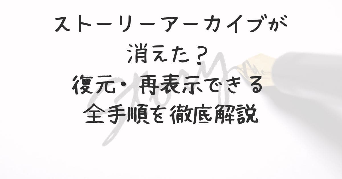 この記事では、ストーリーアーカイブが消えたときの確認ポイントから、復元・再表示の方法、そして今後消えないようにするための予防策までをわかりやすく解説します。