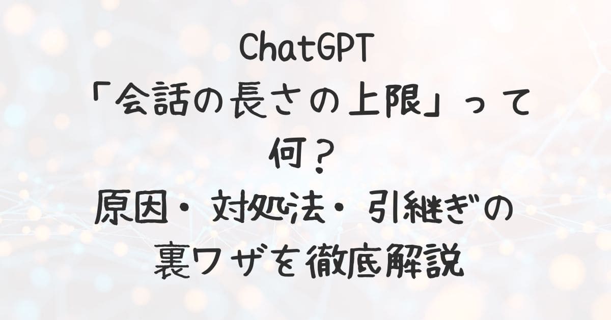 ChatGPT「会話の長さの上限」って何?原因・対処法・引継ぎの裏ワザを徹底解説