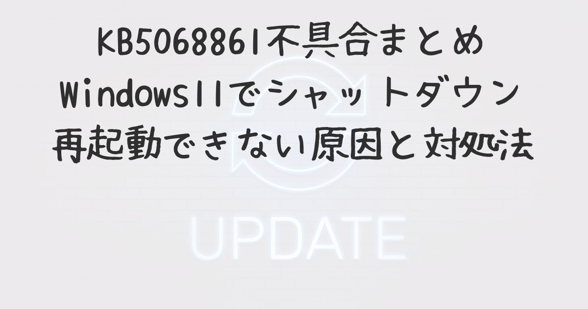 2025年11月のWindows Updateで配信された「KB5068861」をインストールした一部のWindows11環境で、シャットダウンや再起動が正常にできなくなる不具合が報告されています。