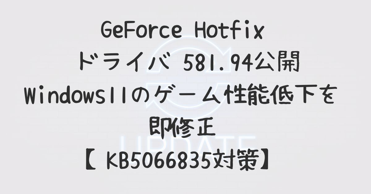 GeForce Hotfix ドライバ 581.94公開:Windows11のゲーム性能低下を即修正【KB5066835対策】