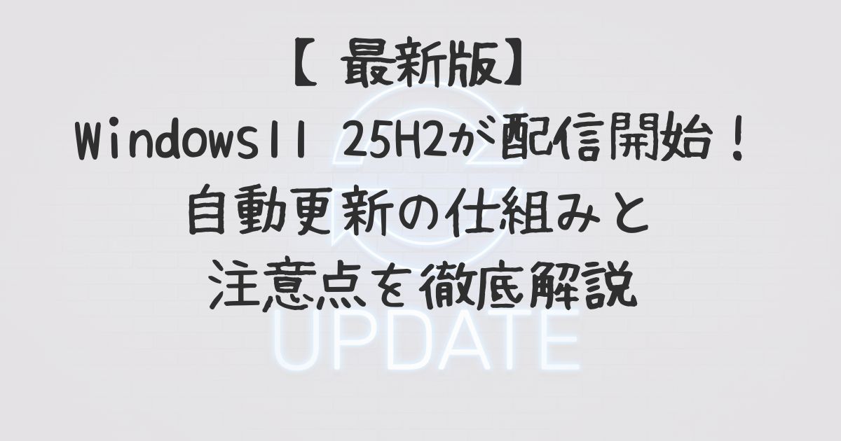 この記事を読めば、自分のPCがいつ25H2になるのか、そして安全にアップデートするための全手順が理解できます。