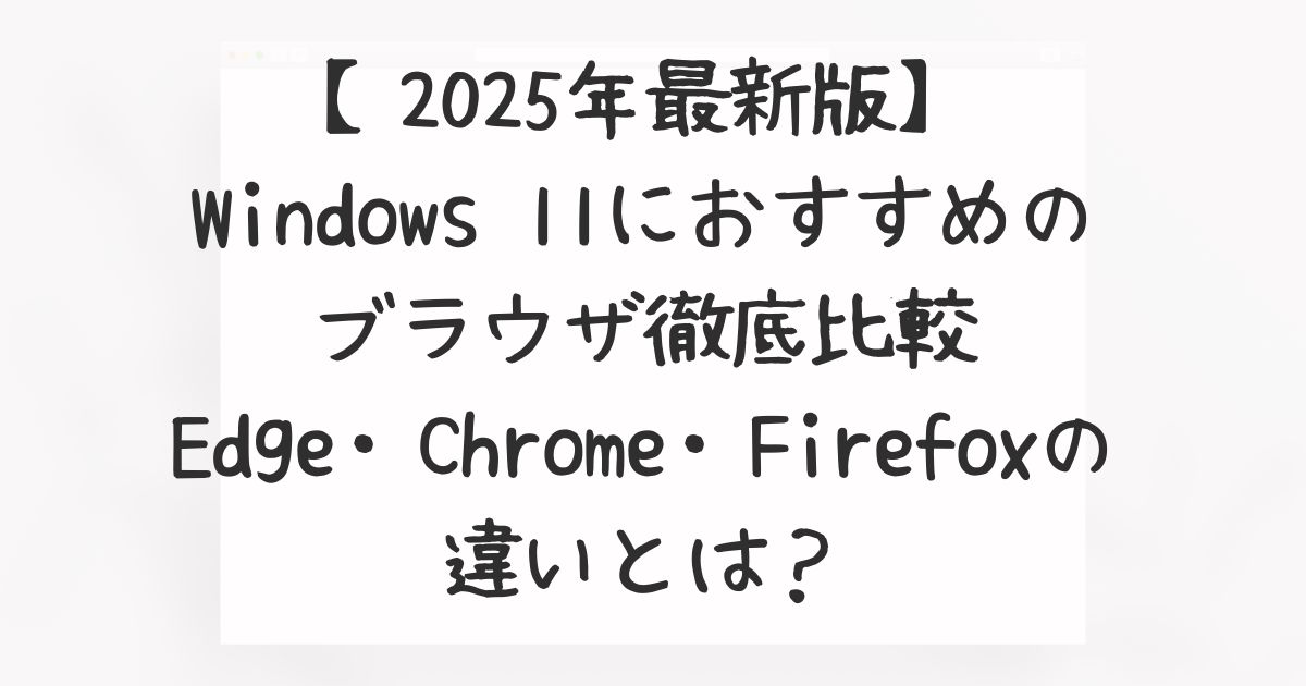 【2025年最新版】Windows 11におすすめのブラウザ徹底比較|Edge・Chrome・Firefoxの違いとは?