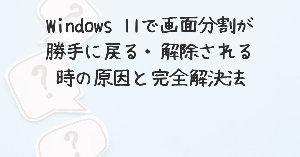 ここまで、Windows 11で画面分割が勝手に戻る・解除される問題の原因と解決策をすべて紹介してきました。