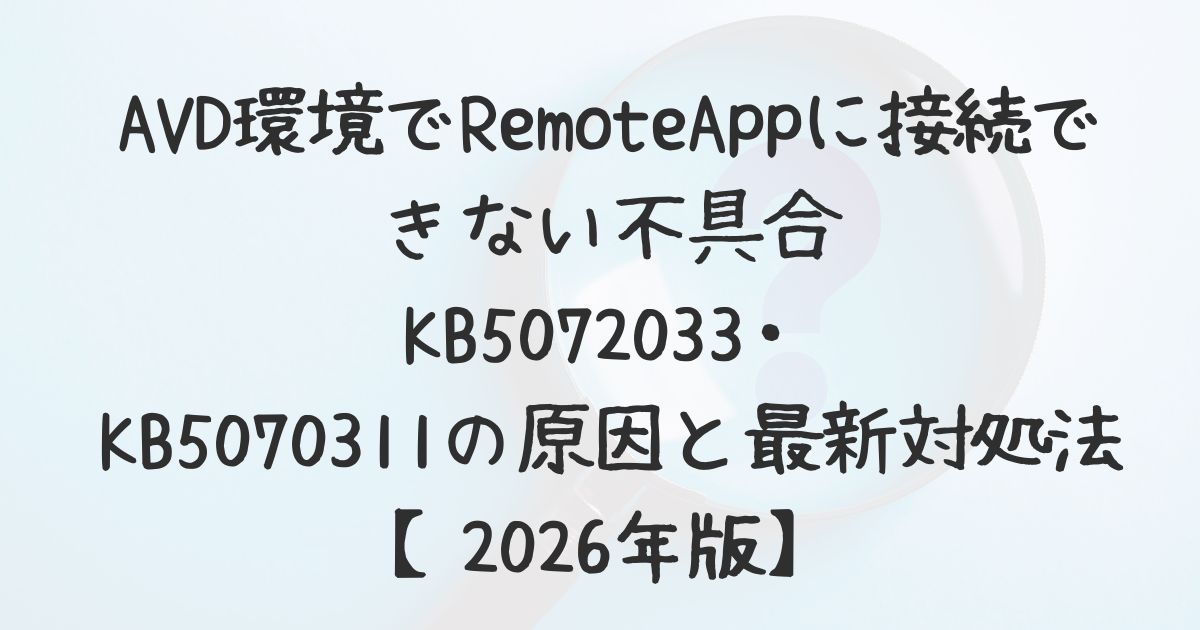 AVD環境でRemoteAppに接続できない不具合|KB5072033・KB5070311の原因と最新対処法【2026年版】